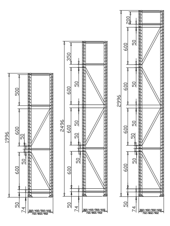 - Стеллажи высотой 2500 и 3000 мм комплектуются 2 крестовинами.