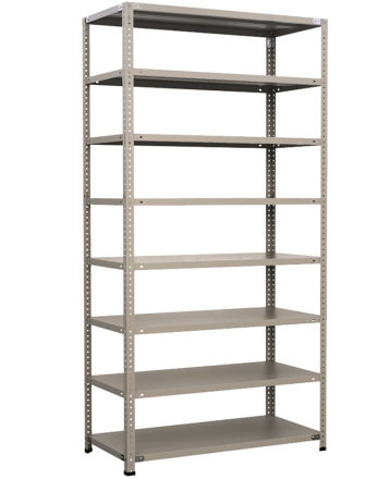Конструктив металлического полочного стеллажа СТФ позволяет собирать, как отдельно стоящий стеллаж, так и многосекционный стеллаж, состоящий из основной секции и неограниченного числа дополнительных секций.